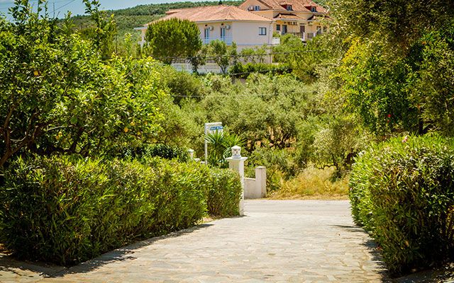 20 meters from the hotel, you can enjoy relaxing on the beach or go for a rejuvenating swim in the blue waters of the Ionian Sea. In our lush garden, hidden in the dense vegetation and the shade of the trees, you will find a gazebo with the endless blue of the sea as a backdrop and swings for your children. Next to our hotel, just 100 meters away, you can enjoy local dishes in traditional tavernas, and you can also buy anything you might need locally.